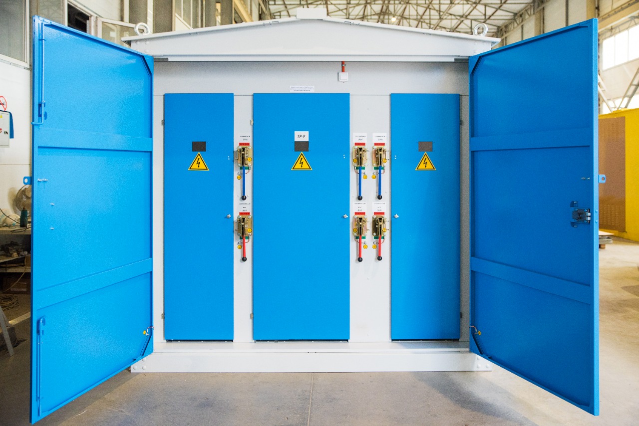 Конструктивно данный вид ТП представляет собой отдельностоящий металлический модуль, выполненный в виде силового каркаса, обшитого листами оцинкованной стали или листами черного металла, толщиной 2 мм. Корпус подстанции имеет двери и вентиляционные решетки с каждой обслуживаемой стороны, все двери снабжены внутренними замками и петлями под навесной замок.