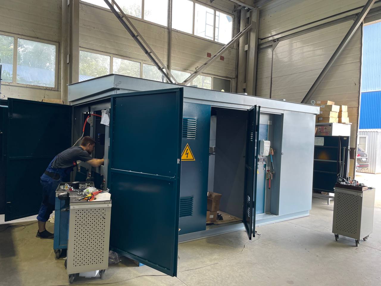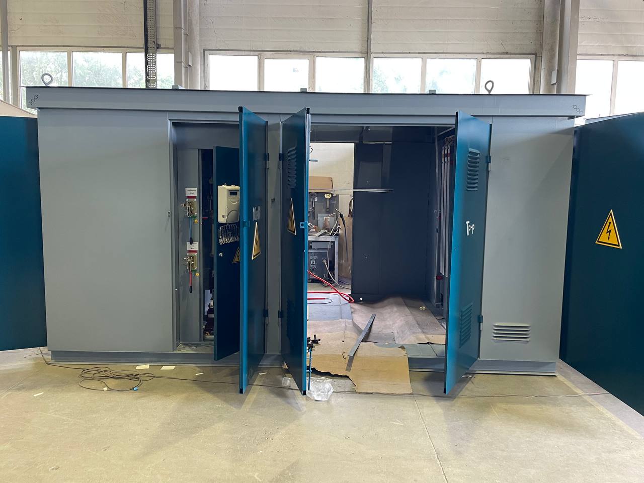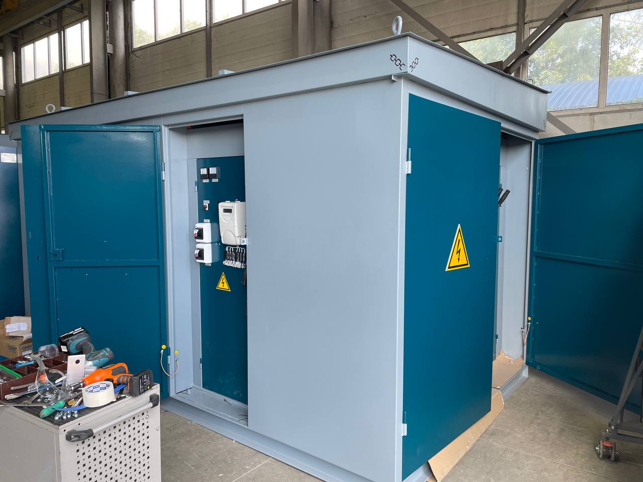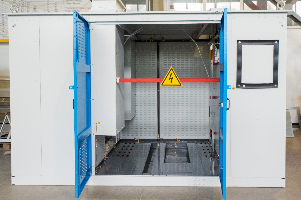 Конструктивно данный вид ТП представляет собой отдельностоящий металлический модуль, выполненный в виде силового каркаса, обшитого листами оцинкованной стали или листами черного металла, толщиной 2 мм. Корпус подстанции имеет двери и вентиляционные решетки с каждой обслуживаемой стороны, все двери снабжены внутренними замками и петлями под навесной замок.